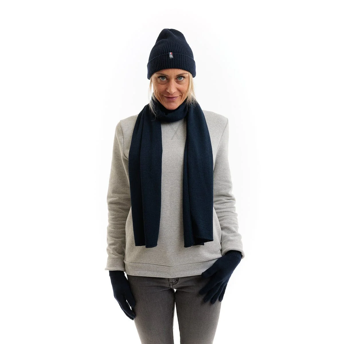 Bonnet en laine bio pour femme bleu marine