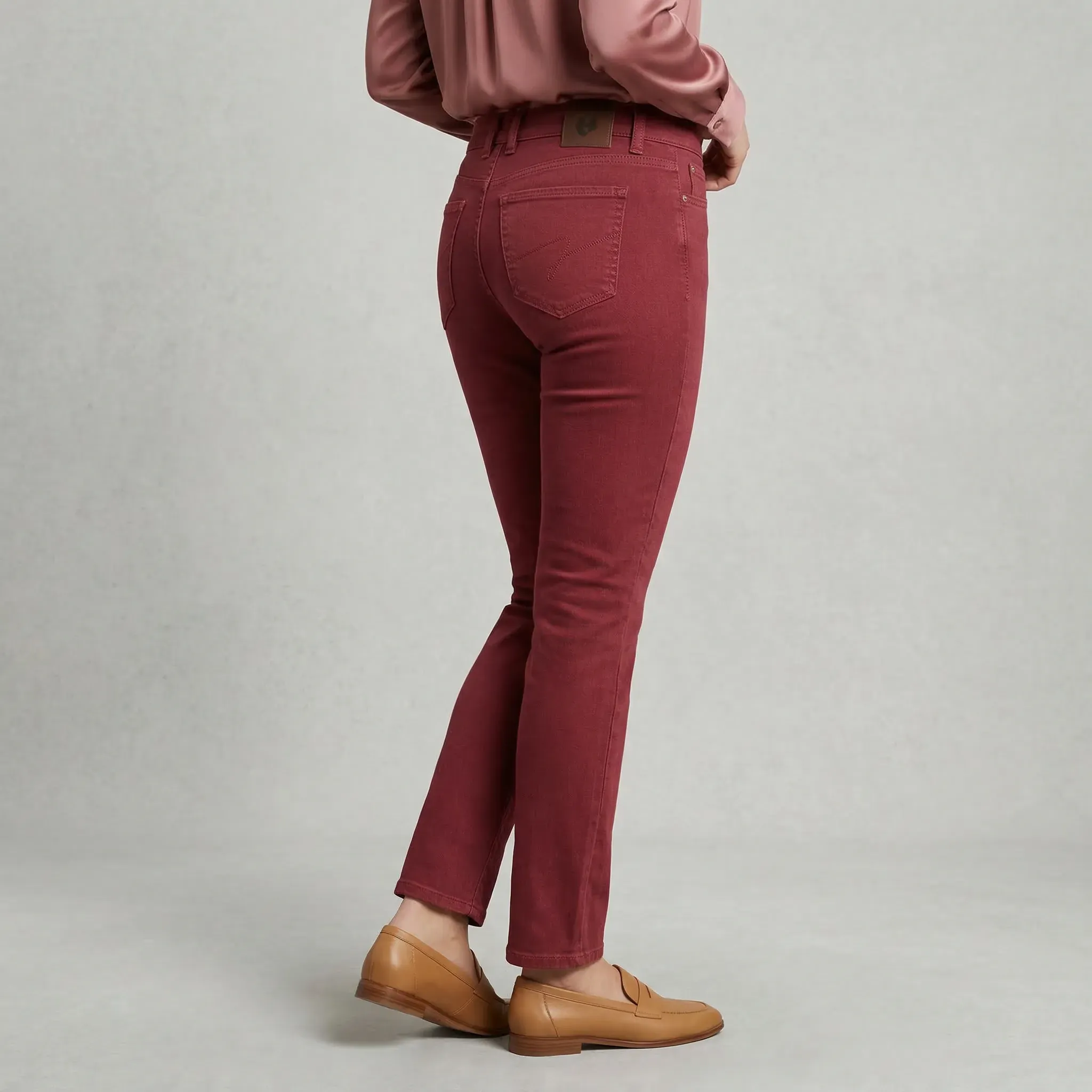 Un jean bordeaux pour affirmer votre style avec élégance. Coupe droite confortable avec stretch. Filé dans les Vosges, teint au Mans, confectionné à Bressuire. 97% coton bio + 3% élasthanne. Le jean qui sublime votre personnalité.