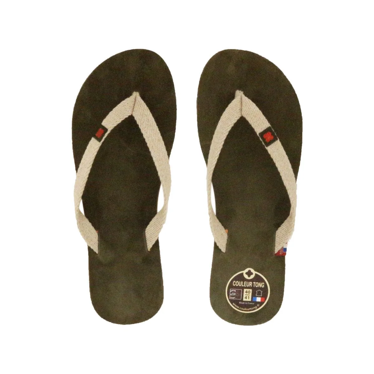 Exprimez votre cÎté nature avec notre tong en cuir vert, une création française pensée pour ceux qui aiment voyager léger, marcher confortablement et garder du style en toute circonstance.
